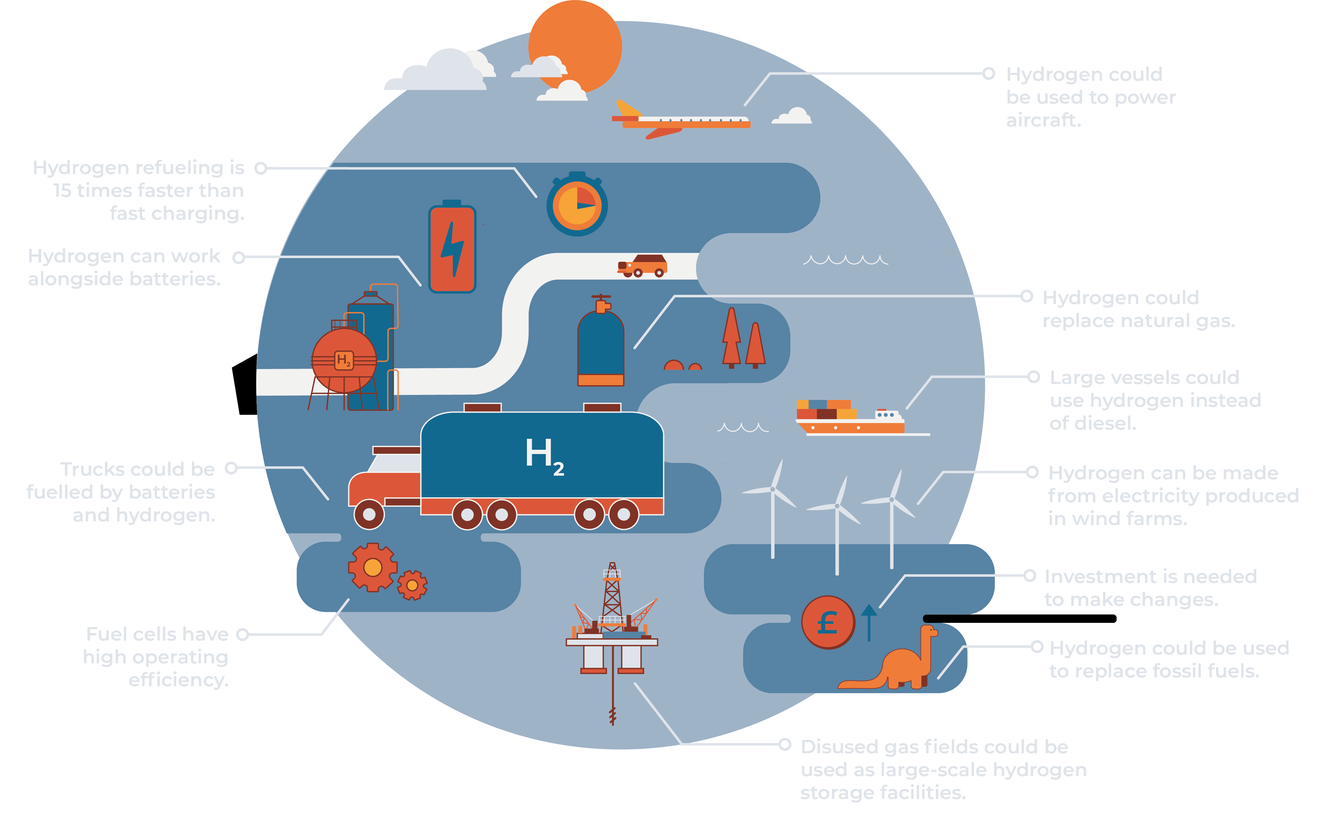 Our hydrogen systems experts can assist your business in the development and scale up of manufacturing lines for hydrogen propulsion systems and their integration into electric vehicles. We can also help you assess the techno-economic opportunities that the hydrogen economy might open up for your business.